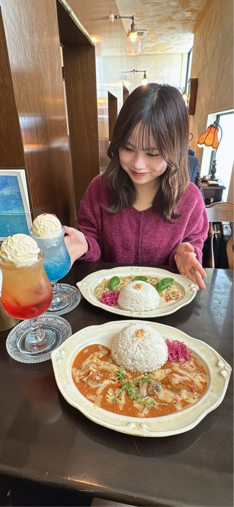 店内は落ち着いたインテリアと統一感のある色調で、とっても居心地の良い空間 カレーも美味しくておすすめ💕